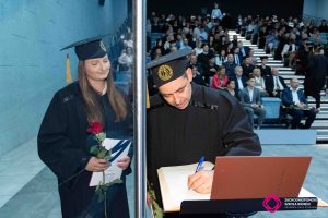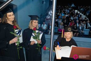 Przyjęcie nowych studentów, rozdanie dyplomów to zawsze, dla Wszystkich wzruszające chwile. Podczas wydarzenia padło mnóstwo ciepłych słów, nie obyło się również bez wzruszeń. Mury naszej uczelni opuściła Pani Marta Gutowska, która przez kilka ostatnich lat, z ogromnym zaangażowaniem pełniła funkcję Przewodniczącej Samorządu Studenckiego. To Ona była łącznikiem między Wami – Studentami a uczelnią.