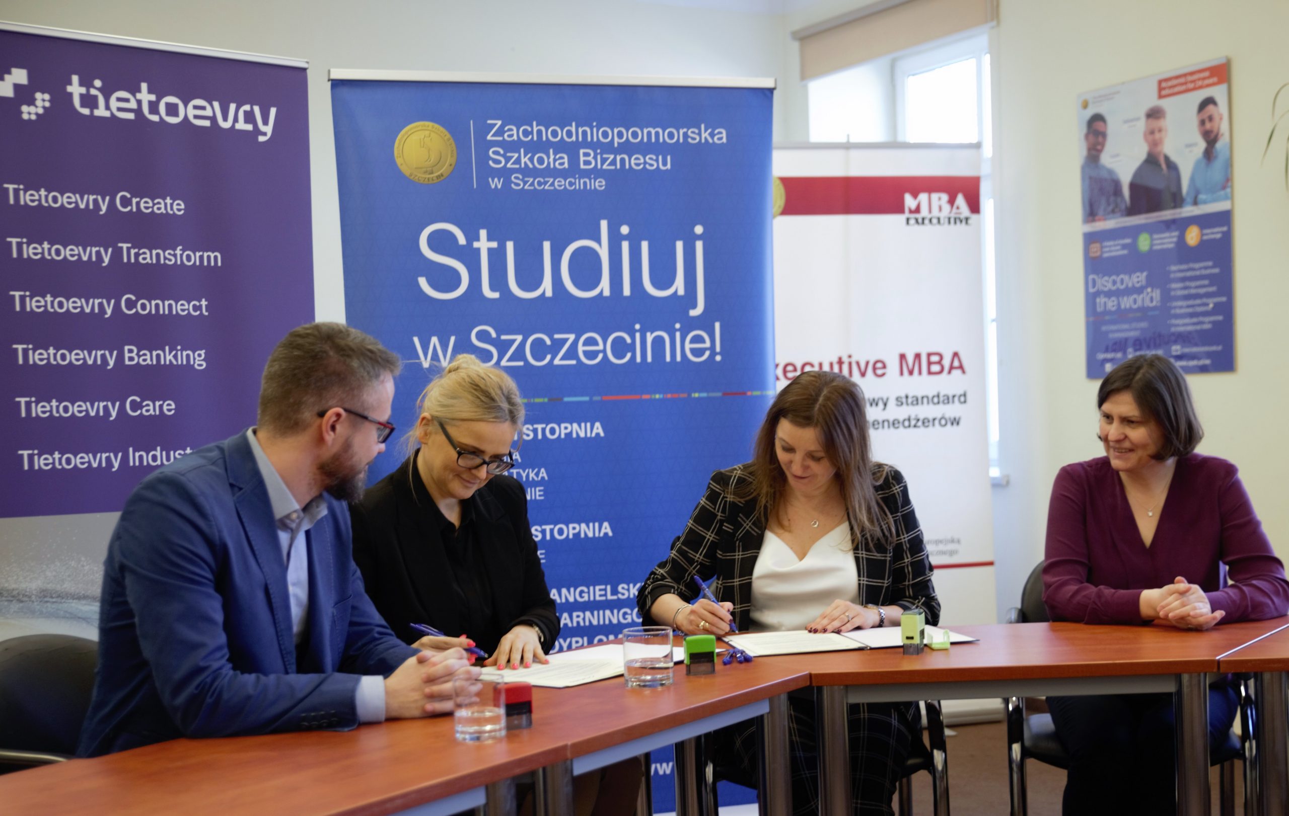 Umowę o współpracy podpisali dziś uroczyście, ze strony Tieto Poland – Michał Mariański, szef Tietoevry na Polskę oraz Katarzyna Wolska, HR Manager na Polskę, a ze strony Zachodniopomorskiej Szkoły Biznesu – prof. ZPSB Justyna Osuch-Mallett, Rektor oraz prof. ZPSB Dorota Dżega Pietruszkiewicz, Prorektor ds. Rozwoju.