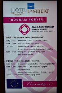 W dniach od 15 grudnia 2025 r. do 16 grudnia 2025 r., w ramach realizowanego przez Zachodniopomorską Szkołę Biznesu – Akademię Nauk Stosowanych projektu „Misja dostępność – program zwiększenia dostępności ZPSB”, w ramach programu FERS 2021 – 2027, wyłoniona na podstawie postępowania zgodnie z zasadą konkurencyjności firma Metaphor przeprowadziła dwudniowe, wyjazdowe warsztaty dla kadry Uczelni.